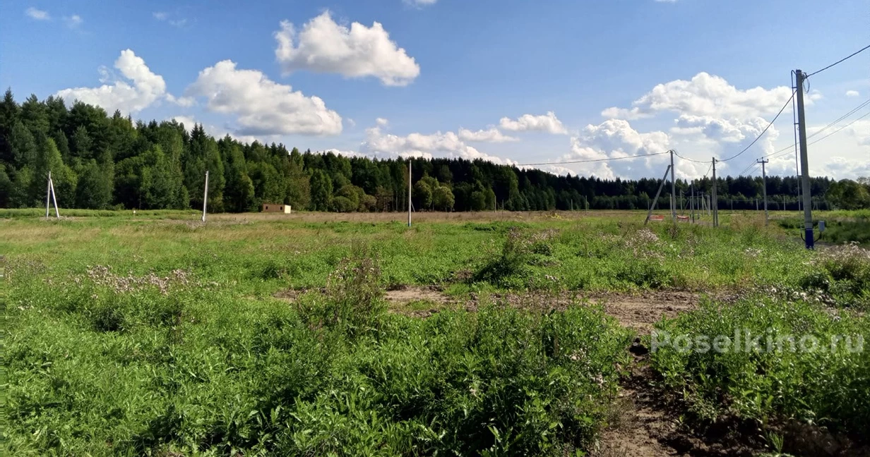 Участок в коттеджном поселке близ Решетниково, всего 500 метров до ж/д станции и час на машине от Москвы. Вокруг зелёный лес и водоем в километре. В поселке есть магазины и стройматериалы – всё, что нужно под рукой.