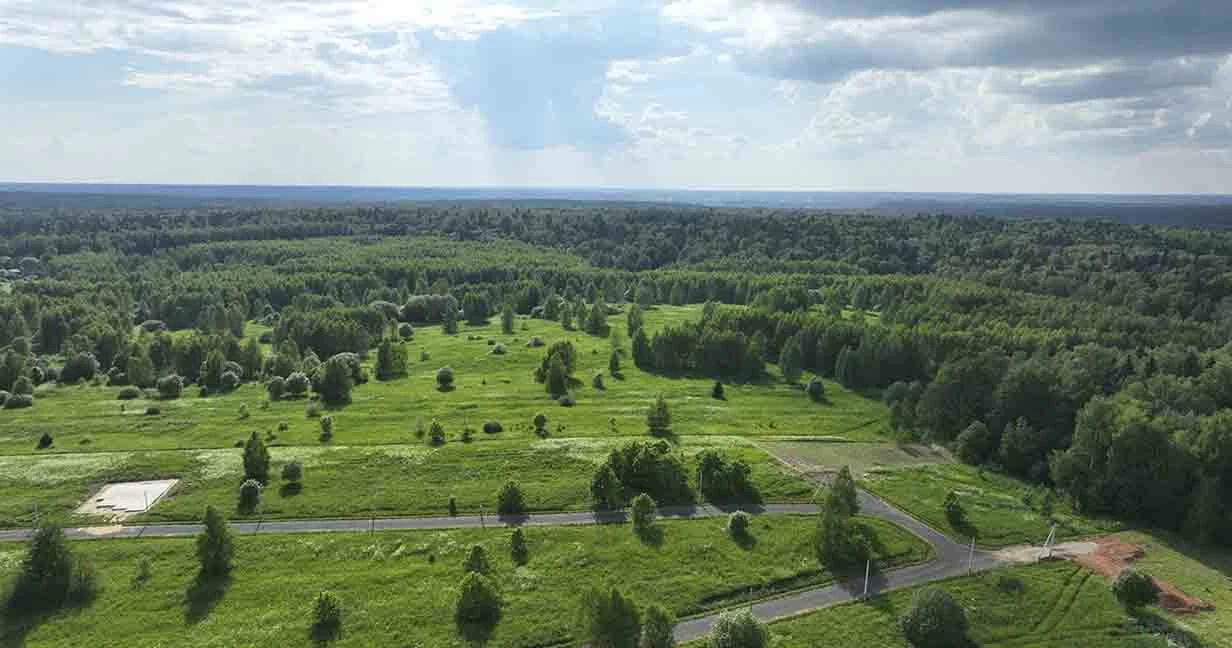Поселок на холме, в окружении леса, с красивейшим панорамным видом! Большие надежды на то, что собственники участков не будут строить двухэтажные дома, перекрывая друг-другу виды эту красоту