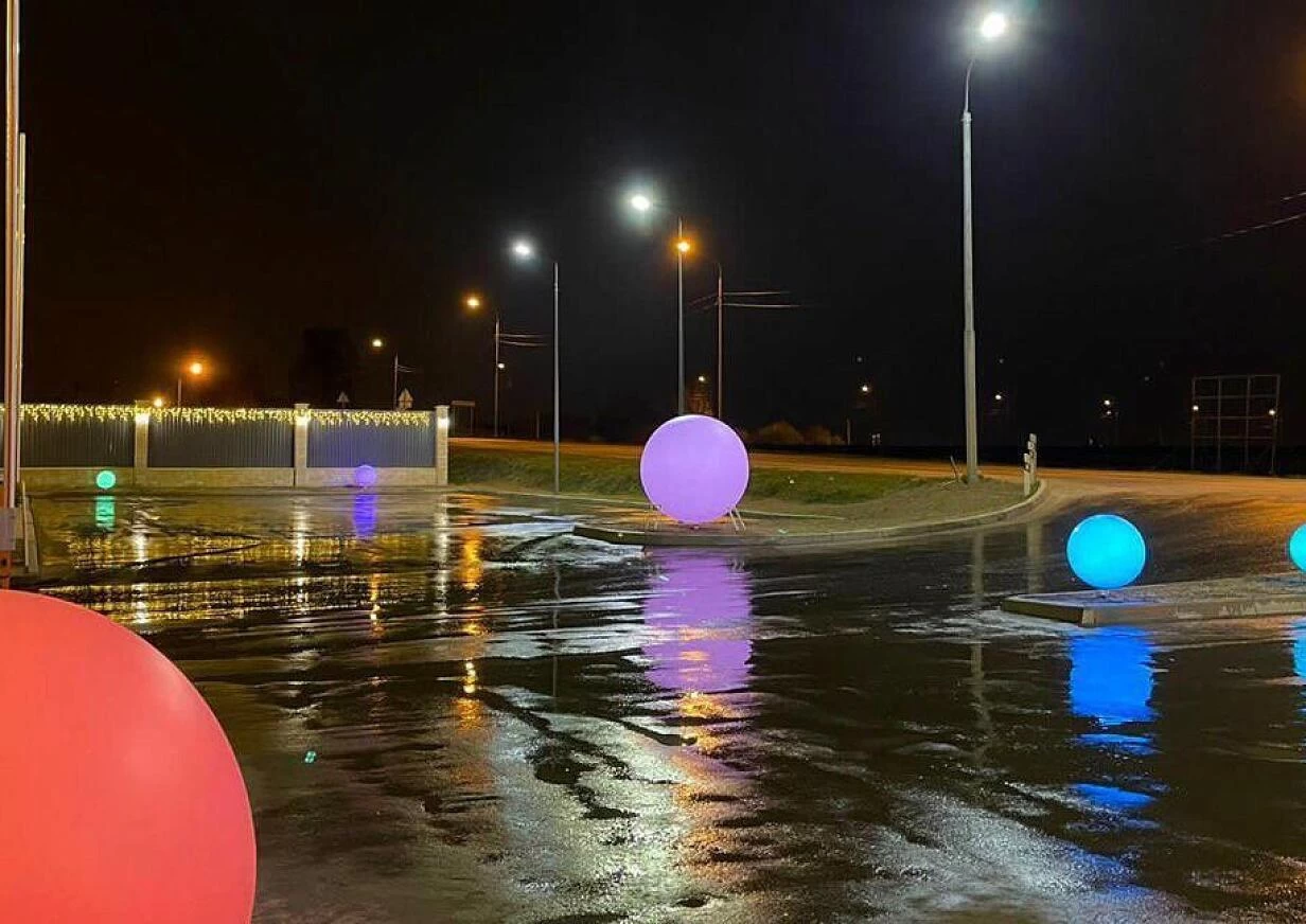 Хоть до праздников еще несколько недель, на въезде в поселок уже сверкает праздничными огнями нарядная елка.