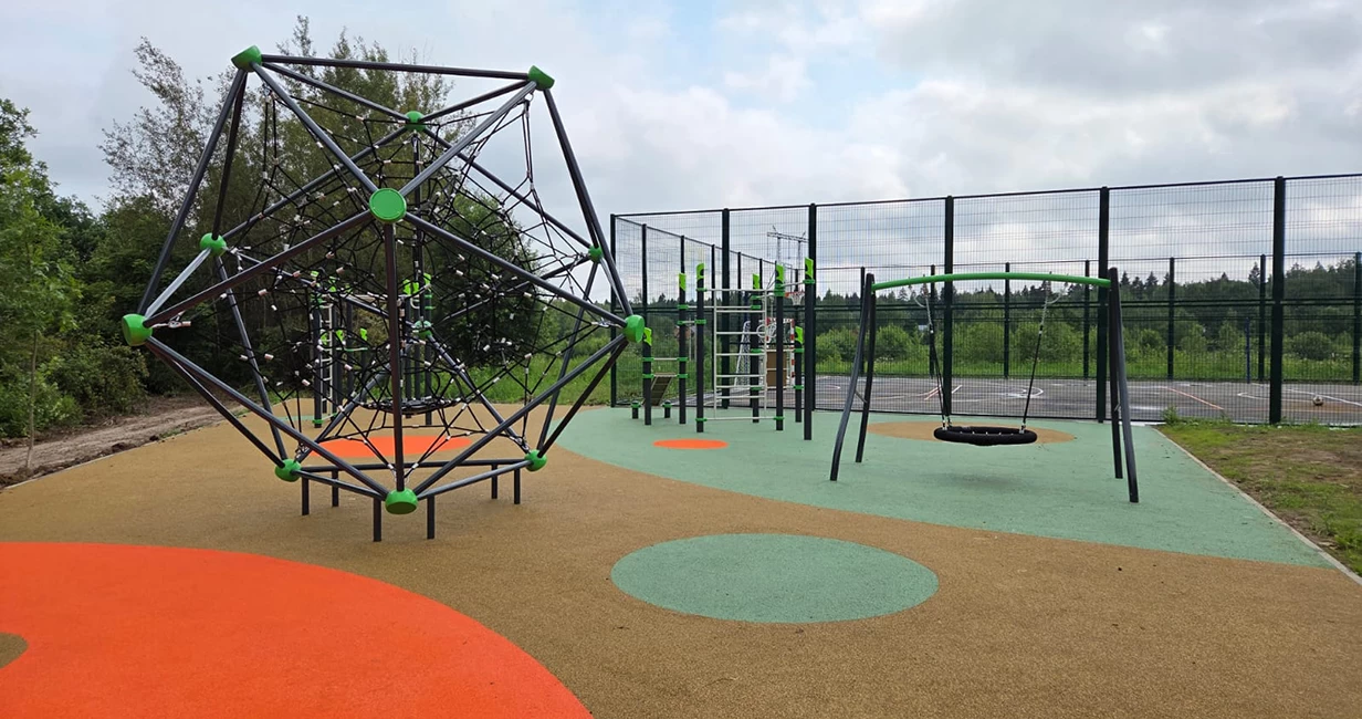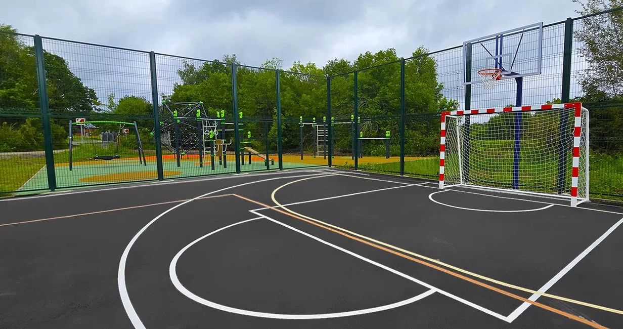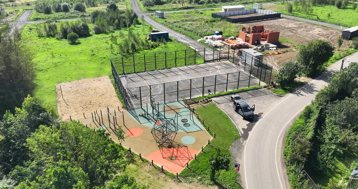 Зона для спортивных игр в поселке уже есть, но застройщик решил добавить к ней еще и площадку для пляжного волейбола.