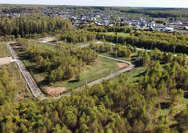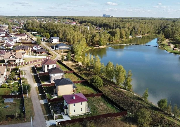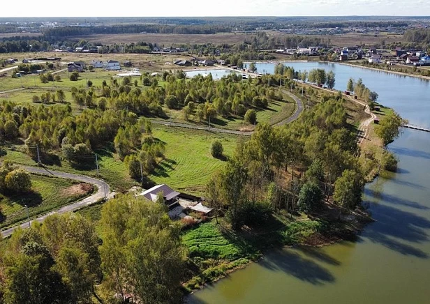 Коттеджный поселок в Чеховском районе отгорожен от шоссе несколькими километрами леса и находится в пешей доступности от большого, богатого рыбой озера.