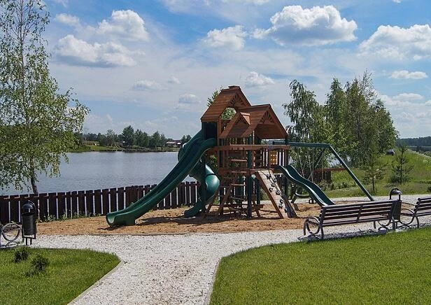 Электричество и газ подведены к границам участков. На территории поселка обустроено несколько площадок для малышей и спортивных зон для спортивных игр на свежем воздухе, есть небольшой парк с прудом.