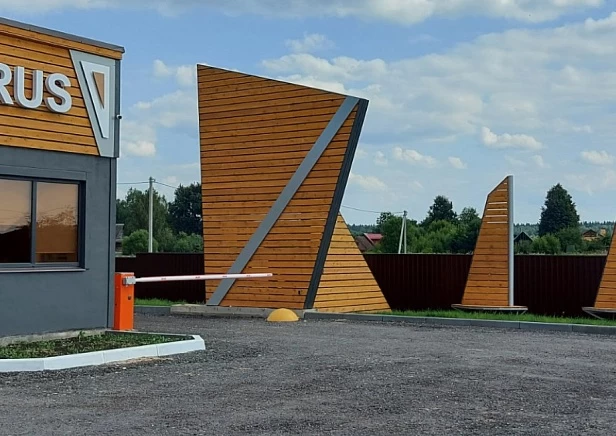 Декоративное ограждение делается не слишком высоким, чтобы ограничить проникновение посторонних на территорию поселка, но не перекрывать вид на окрестные пейзажи.