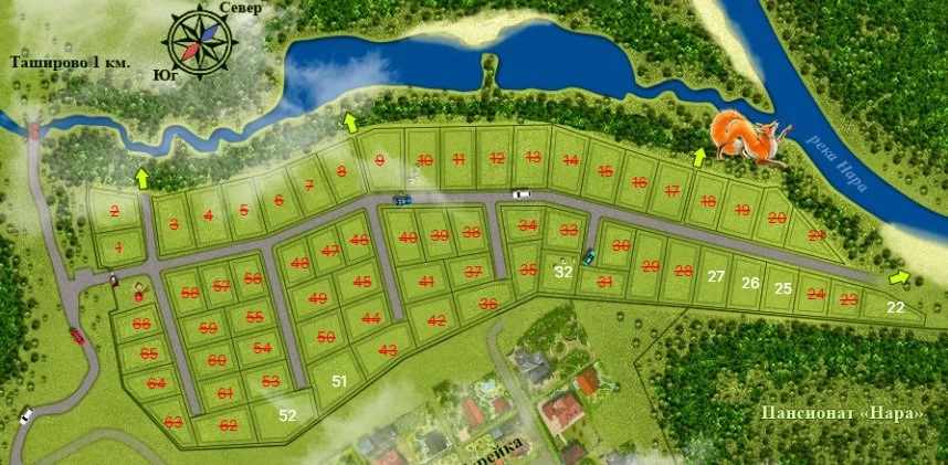 Участки под застройку на границе Наро-Фоминска. К границам участков подведено электричество, но поблизости есть располагаются сети газо- и водоснабжения, так что собственники могут принять решение о подключении и оформить необходимый пакет документов. На севере поселок примыкает к р. Наре, здесь будет зона отдыха. В пешей доступности от поселка находится пляж.